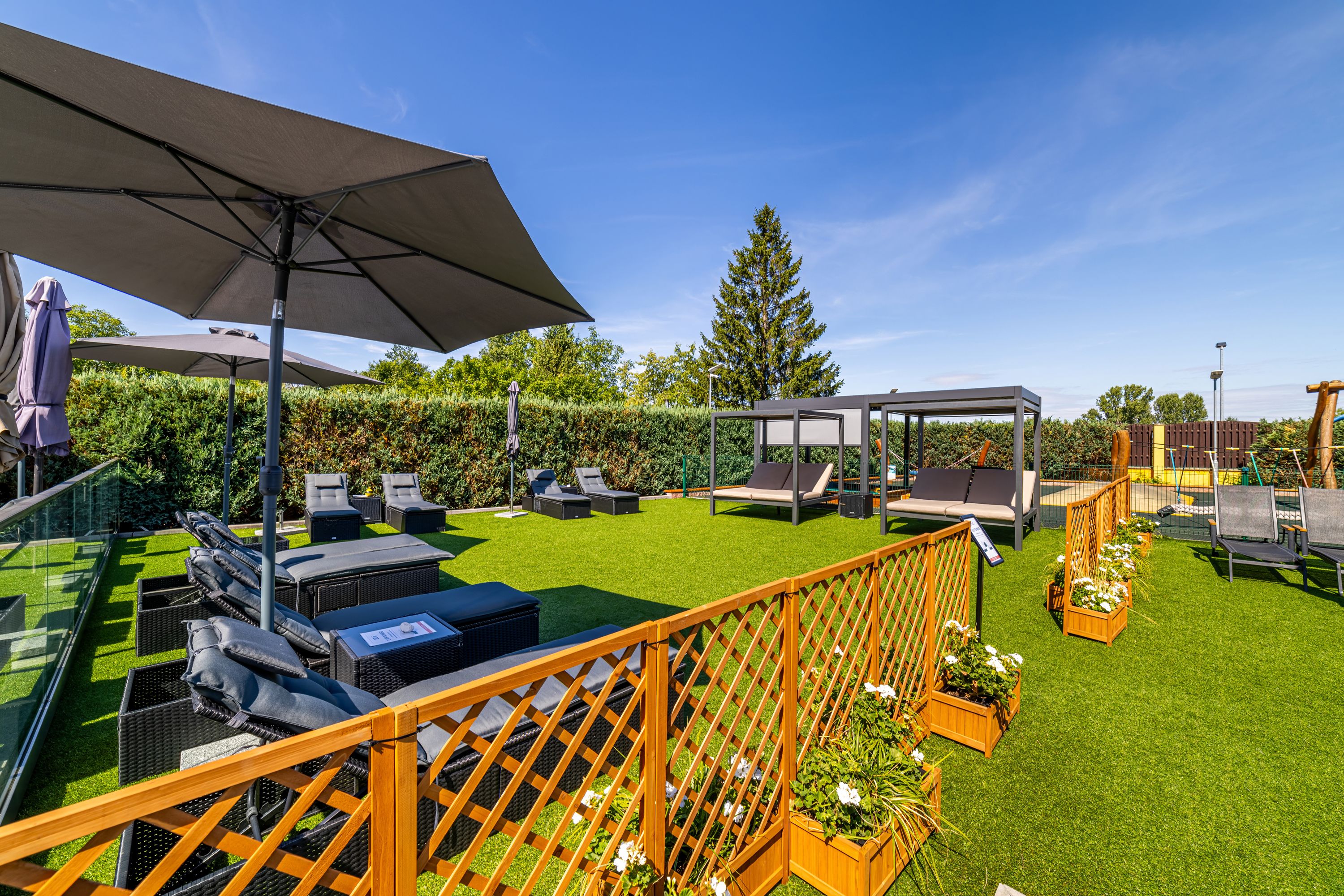 Hote Aura Praha design & garden pool nabízí soukromou zahradu s venkovním nerezovým bazénem a relaxační zónou, která vytváří ideální prostředí pro odpočinek v srdci města.
